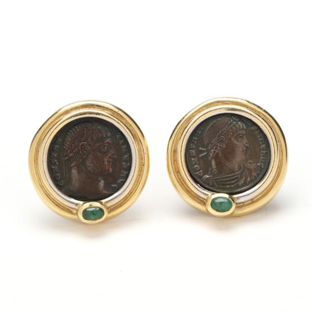 Lot 3056 · 14KT Gold Ear Clips Each Holding a Roman Silver Denarius